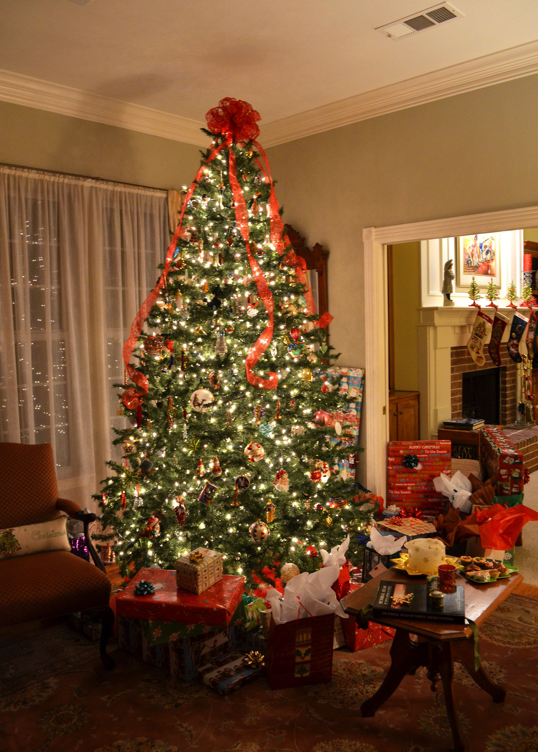 But with these styling tricks, you can make a small living room seem bigger than it is. This living room's Christmas tree shows off many distinctive decorating elements such as pomegranates, lamb's ear, and eucalyptus garlands. You can find ideas for decorating your dining room hutch, your buffet, and even your dining room chairs.